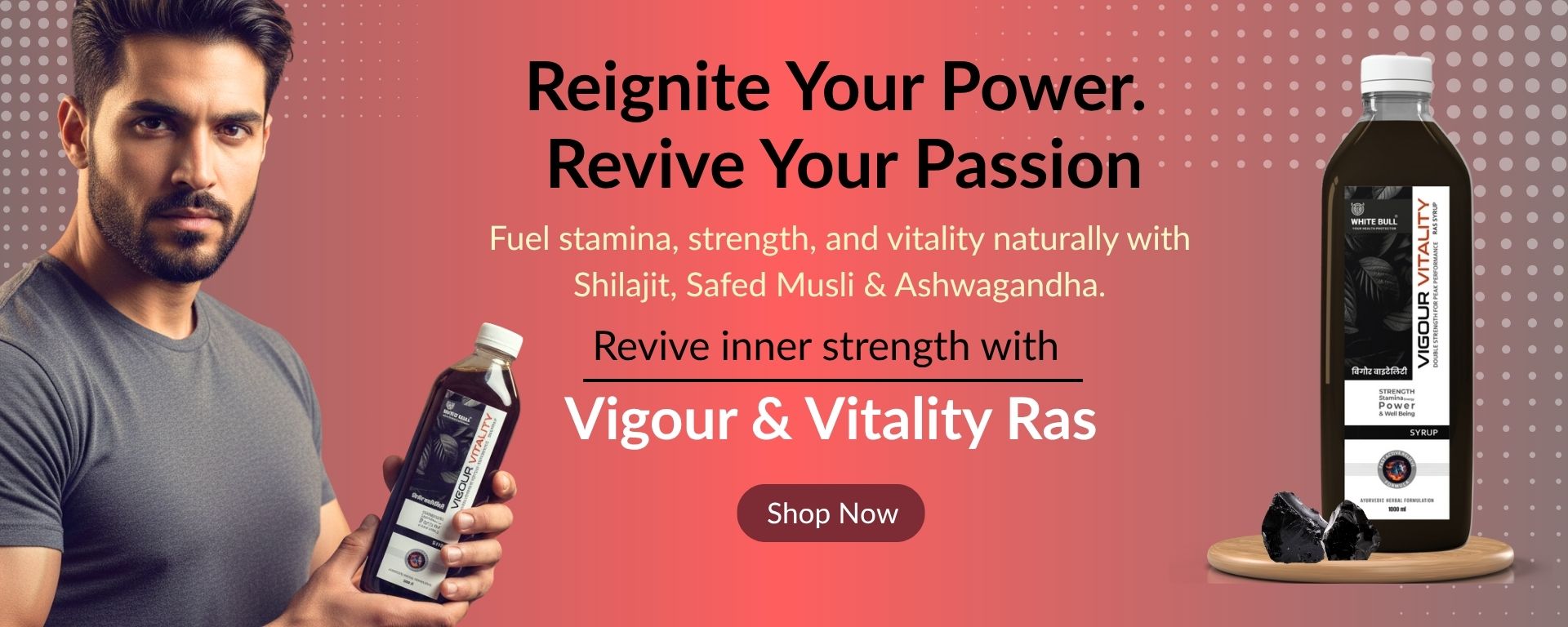 Vigour & Vitality Ras Syrup | Shilajit, Safed Museli and 9 Potent Ayurvedic Botanical Herbs | Enhances Physical performance & Stamina | 1 Lit