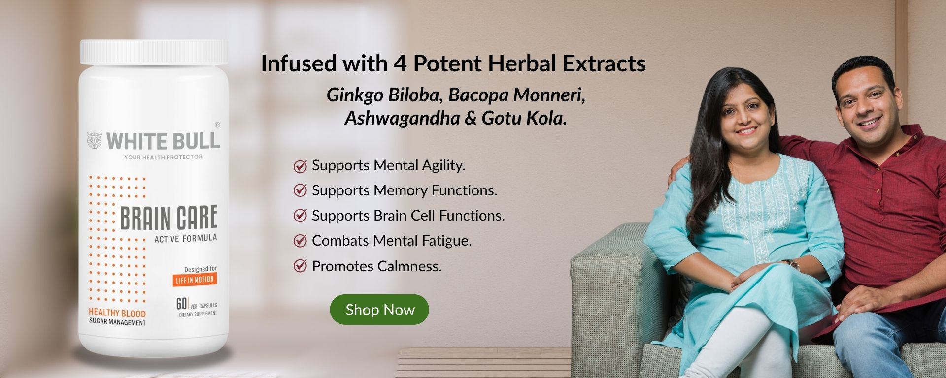 Brain Care | Herbal Brain Support Tablets for Memory Focus Cognitive Wellness With Ginkgo Biloba 1000mcg | Vegetarian Gluten & Paraben Free | 60 Capsules